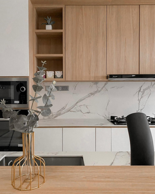 Consider adding a marble back-splash for a touch of luxury in your kitchen. What’s more, it enhances the overall aesthetic of your minimalist kitchen.