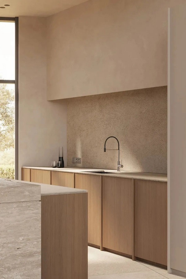 Using Jek Sexton Ash as the kitchen cabinet and combining the cement material with earth color as the ornament of the space background, which make the whole space beautiful, clean and soft.