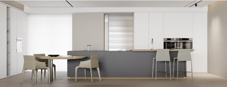 The whole space is characterized by a clean white color