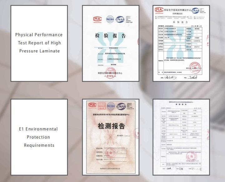 BODA W0100B high pressure laminates has gradually passed EN438, NEMA, CE, FSC, GREENGUARD and has improved the quality of inspection and monitoring throughout the entire production process. The system ensures the quality and stability of its products, simultaneously, the technical follow-up and technological innovation are continuously improved, as well as the product specifications and collections. Within BODA’s HPL collection there is a series of press plates, not limited to, but including antibacterial, postforming, and chemical resistant, while the deep processing and application of weather resistant properties are constantly being explored and developed.